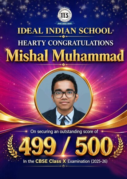Ideal Indian School (IIS) takes immense pride in the remarkable achievements of its students and staff who consistently uphold the school’s legacy of excellence. Since its establishment in 1985, IIS has grown into one of the largest and most respected educational institutions in the Gulf region, distinguished for its academic brilliance, cultural vibrancy, and sporting success.