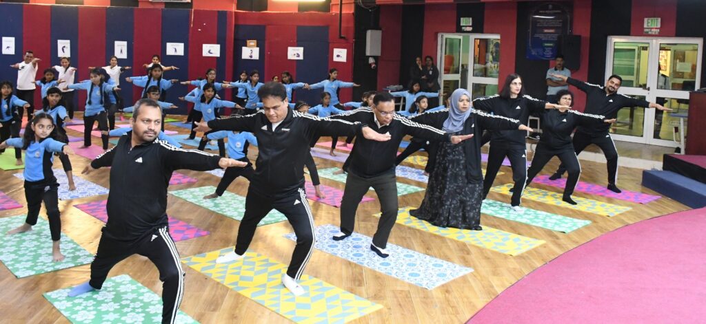 Ideal Indian School celebrated the International Day of Yoga with enthusiastic student participation. In commemoration of the occasion, IIS organised a vibrant and inspiring yoga session under the theme “Yoga for One Earth, One Health.” The event was conducted by the Department of Physical Education and witnessed active participation from a large number of students from the Junior, Boys’, and Girls’ Sections, who came together to embrace the spirit of yoga and well-being.