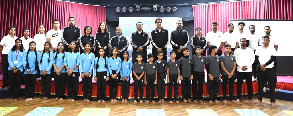 The event began with warm-up exercises and stretching routines, followed by a well-coordinated demonstration of sitting and standing asanas, showcasing the students’ discipline, focus, and flexibility. The entire performance reflected weeks of preparation and training, highlighting the importance of incorporating yoga into daily life for improved concentration, relaxation, and overall fitness.
